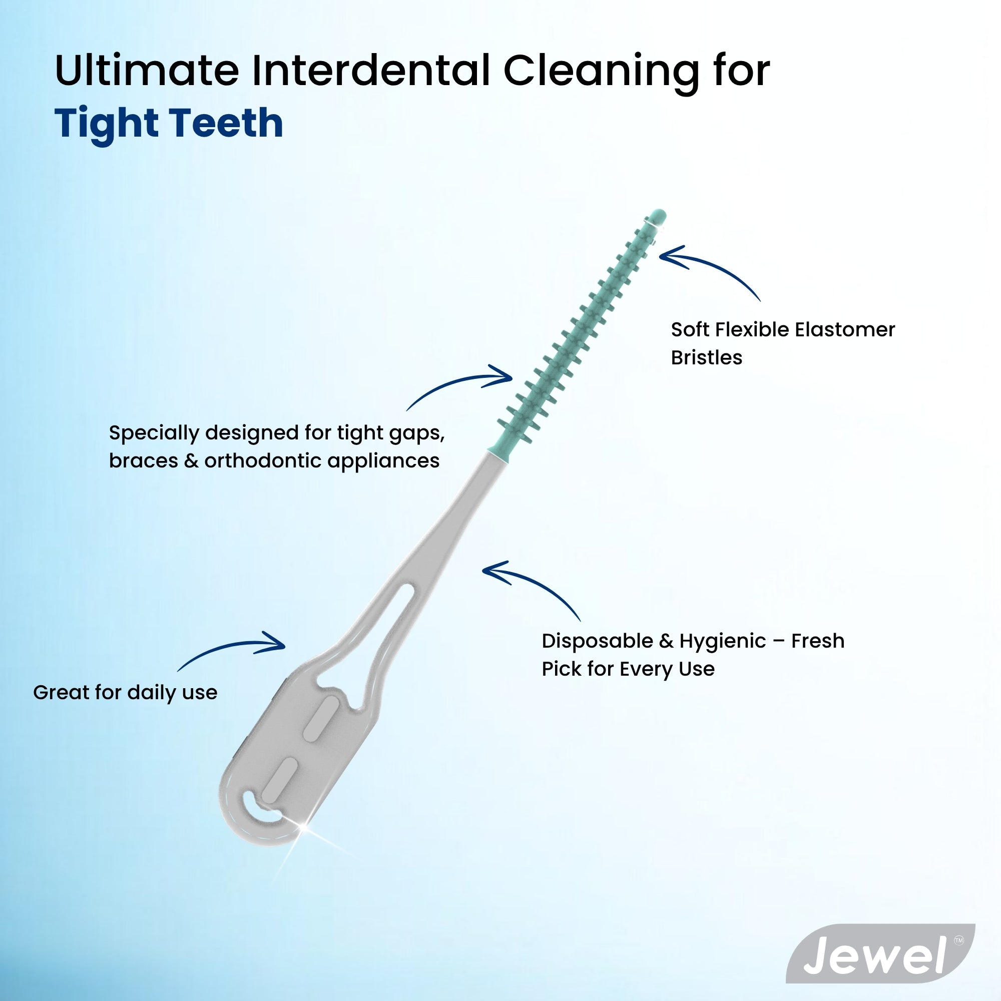 Achieve superior interdental cleaning with the Jewel Soft Picks (SP-07). Designed with soft flexible elastomer bristles, these disposable picks gently massage gums while removing plaque and debris, promoting better gum health and fresher breath. Whether you need a slim design for ultra-tight spaces or a wider brush for larger gaps, Jewel offers a tailored solution for every smile.