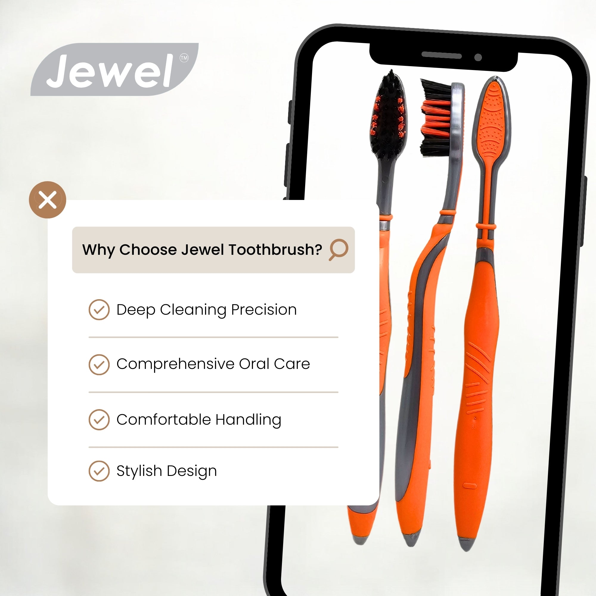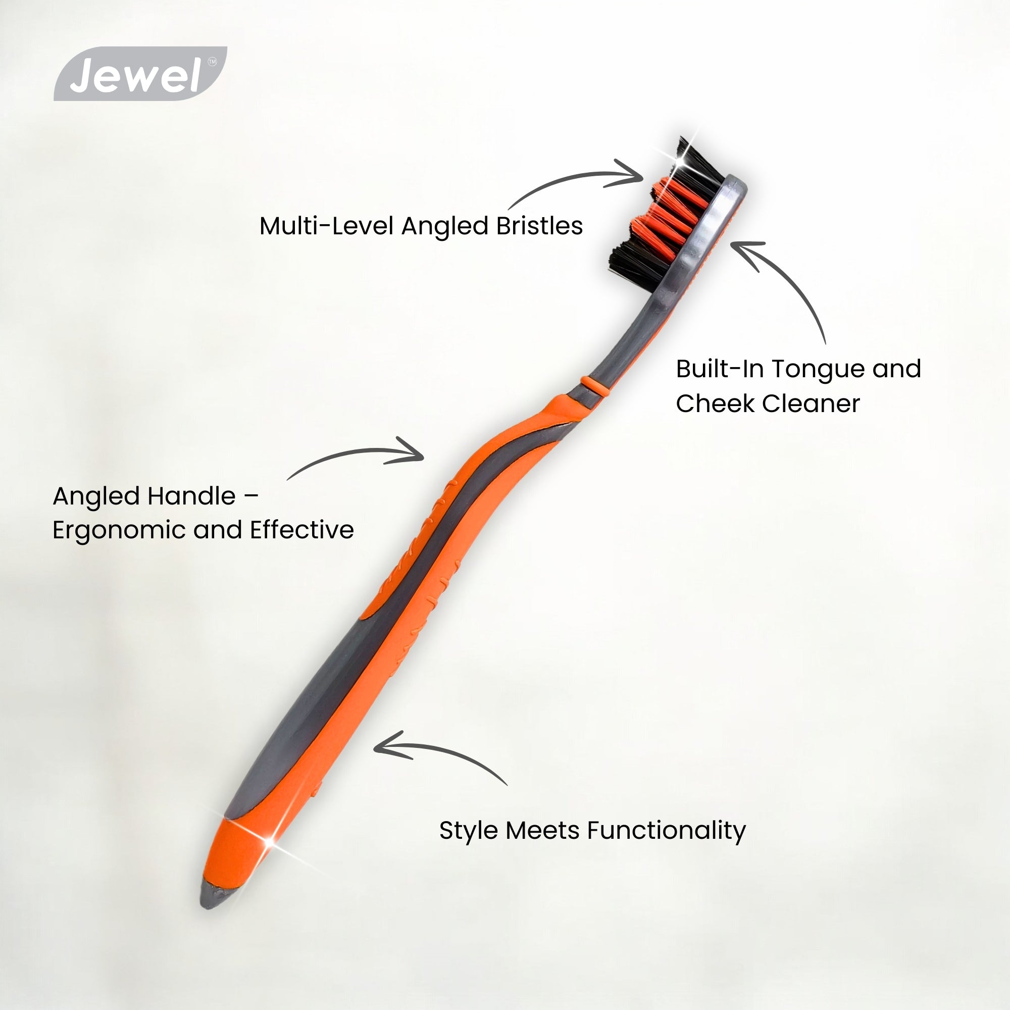 The Jewel T42 Toothbrush is engineered for those who demand precise, deep cleaning with effortless reach. Featuring multi-level angled bristles, a deep sweep power tip, and an ergonomic angled handle, the T42 ensures that every brushing session is thorough, comfortable, and effective.
